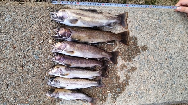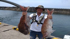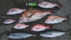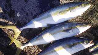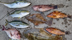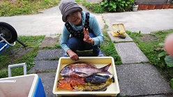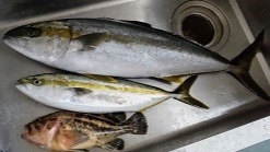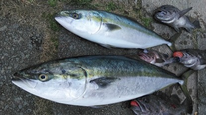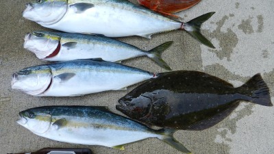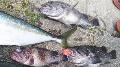 ジギング船・お泊りの釣り人・当館夫婦の釣果です<゜)))彡